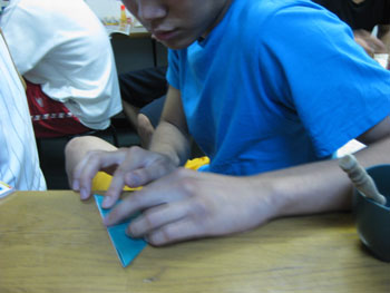 黄色い紙でお星さまを~。。
