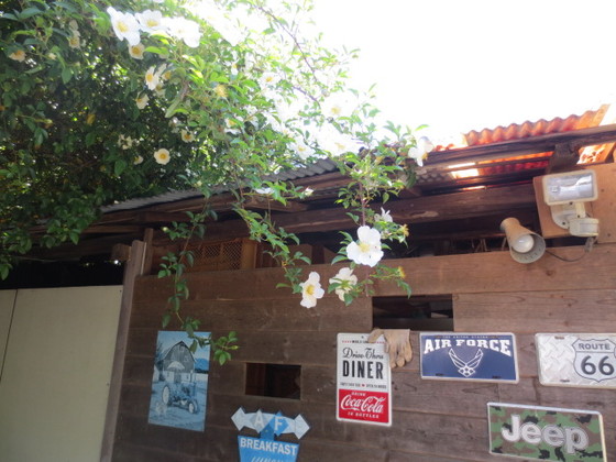 飛翔秘密基地に白いバラが咲いています。写真が上手く撮れませんでしたね~