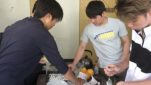 飛翔ピアノを、みんなで弾いています。