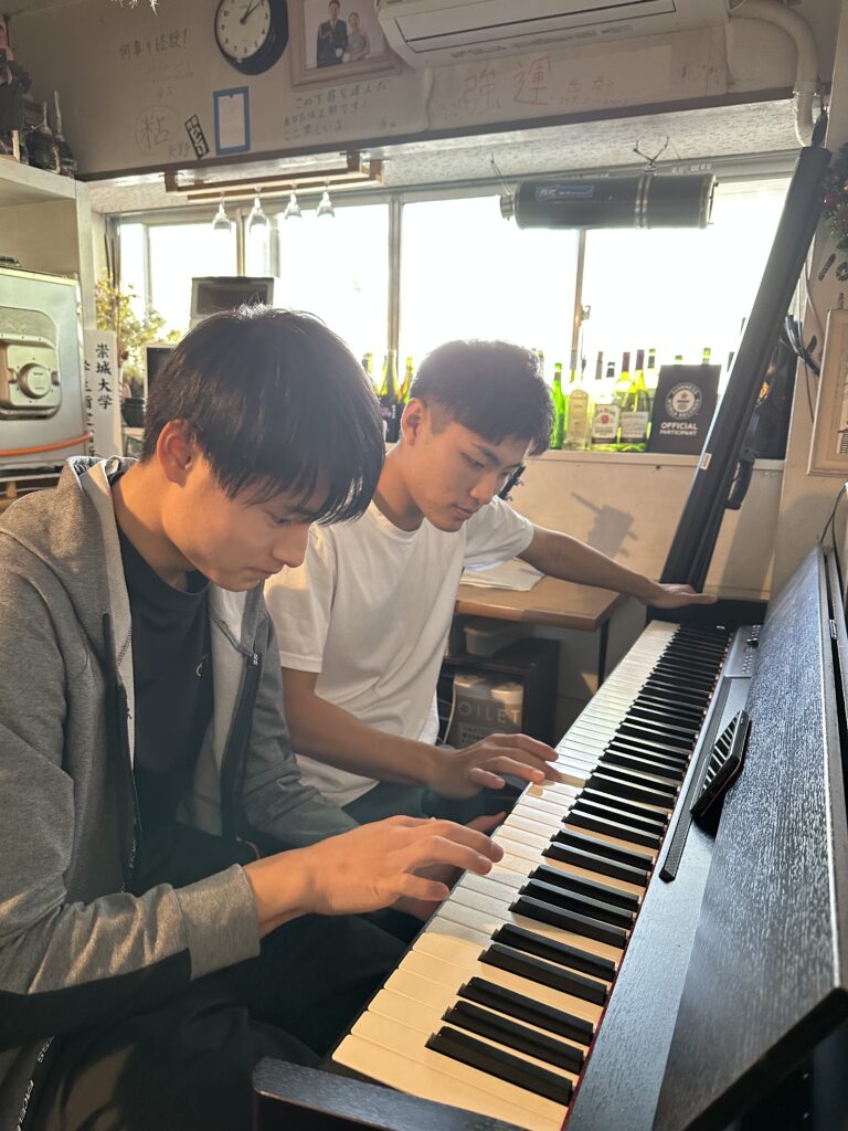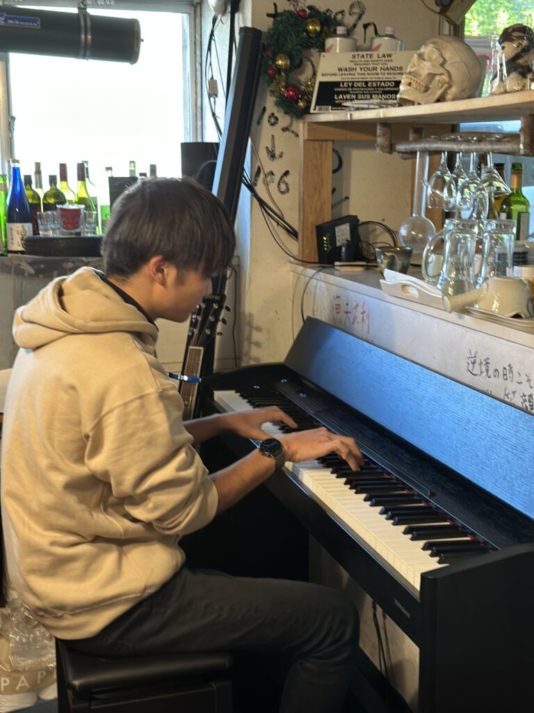 空港キャンパスで修行している みっしさんやほっしいさんはピアノを弾きに時々帰ってきます。エリックさんはギターを奏でに。。みっしとエリック(コンビ名ふりかけ)は滑走路の近くで二人だけの非公開「ふりかけライヴ」をやってるようですよ。(笑)いいなっ!!